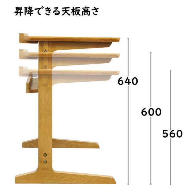天板の高さを3段階に調節できるため、ソファーの高さに合わせて天板の高さを変えることができます。