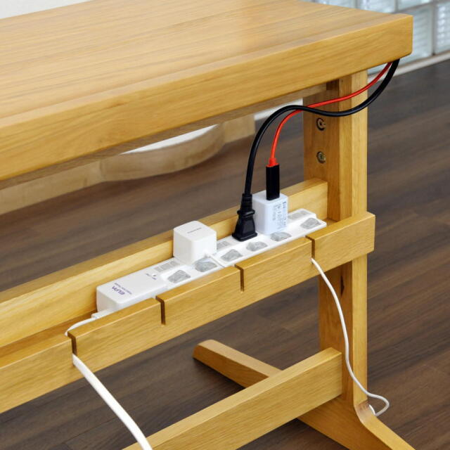 天板下の後ろ側に配線用ラックがあり、電源コードやLANケーブルの配線や電源アダプターを綺麗に収納できます。